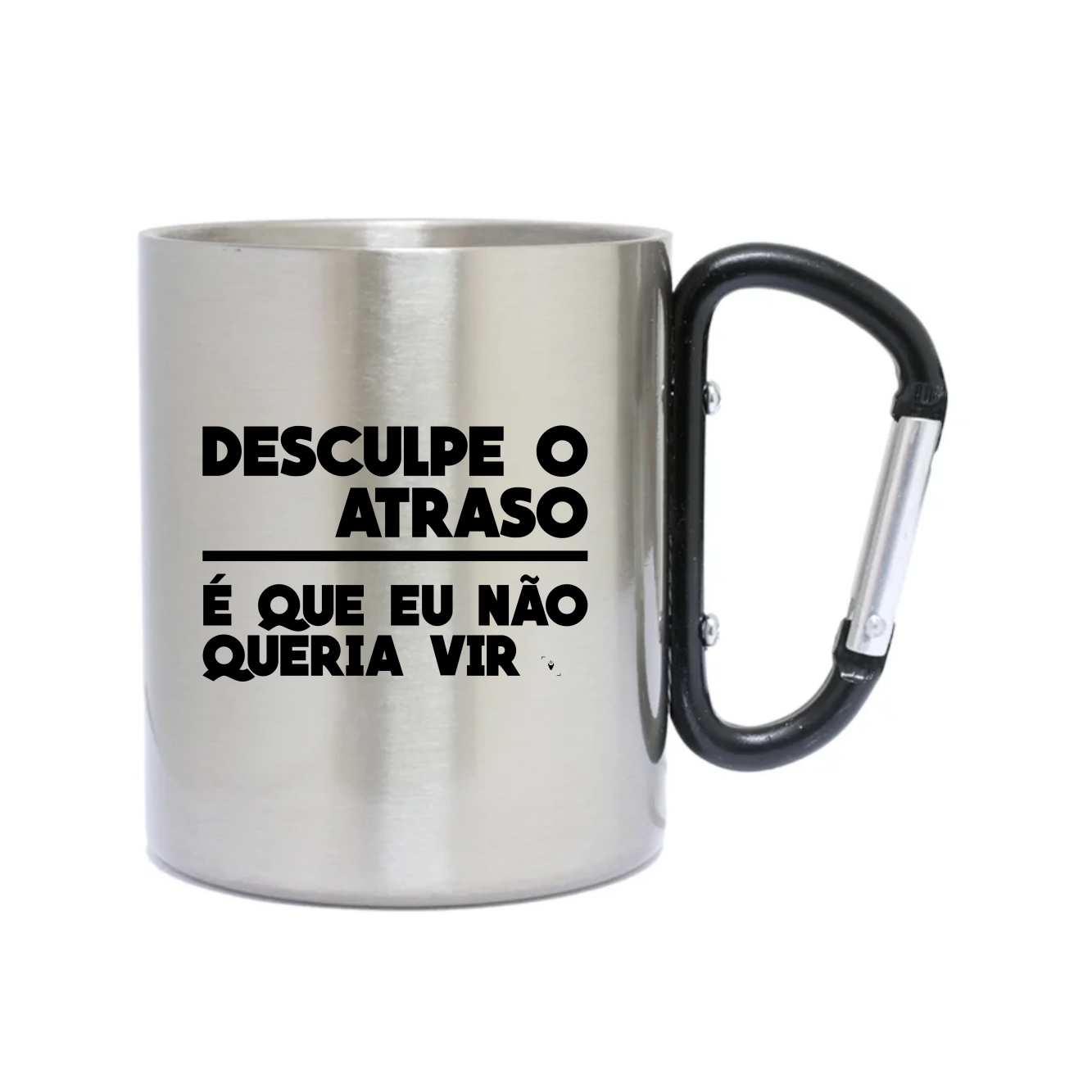 A Caneca Aço Inox Mosquetão é moderna, diferenciada pela alça mosquetão que facilita o transporte para qualquer lugar. Ela é leve e resistente e tem capacidade para 250ml. Material: Inox.